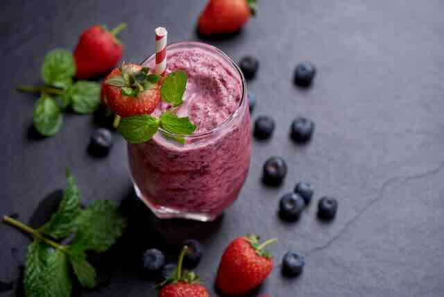 Mixed Berries, hemp seeds, chia seeds, flax seeds, mct oil, spinach and protein powder.