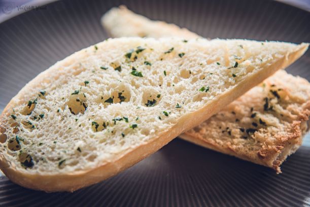 A loaf of par-baked, hot from your oven in less than 10 minutes, buttery garlic bread. Perfect side to any dinner or soup.